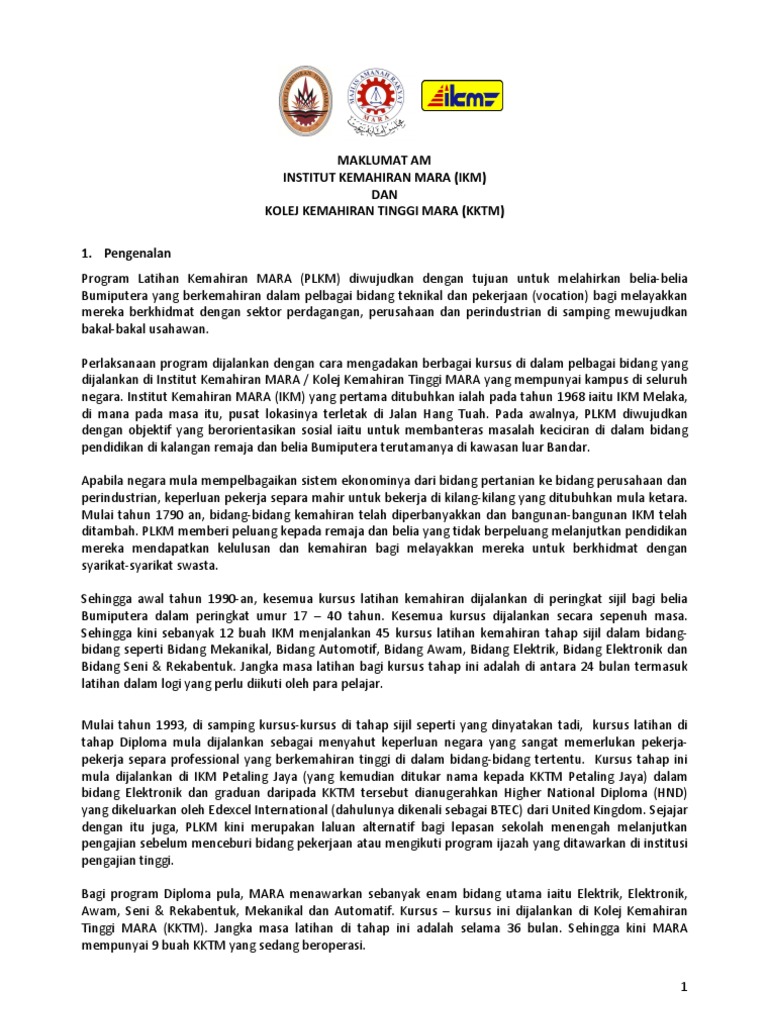 Senarai Kursus Ikm Dan Lokasi Institut Kemahiran Mara Permohonan My