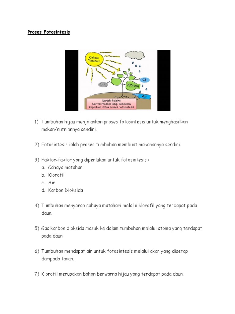Latihan Sains Tahun 5 Proses Hidup Tumbuhan