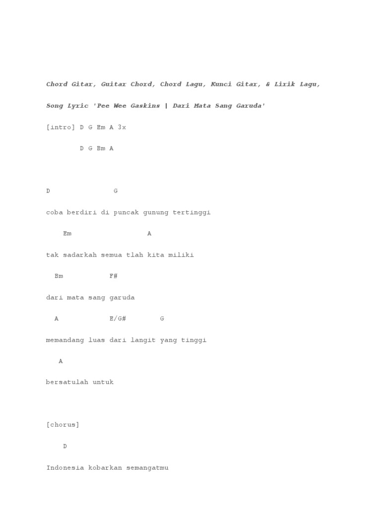 Lirik Dan Chord Lagu Dari Mata Sang Garuda Pee Wee Gaskins