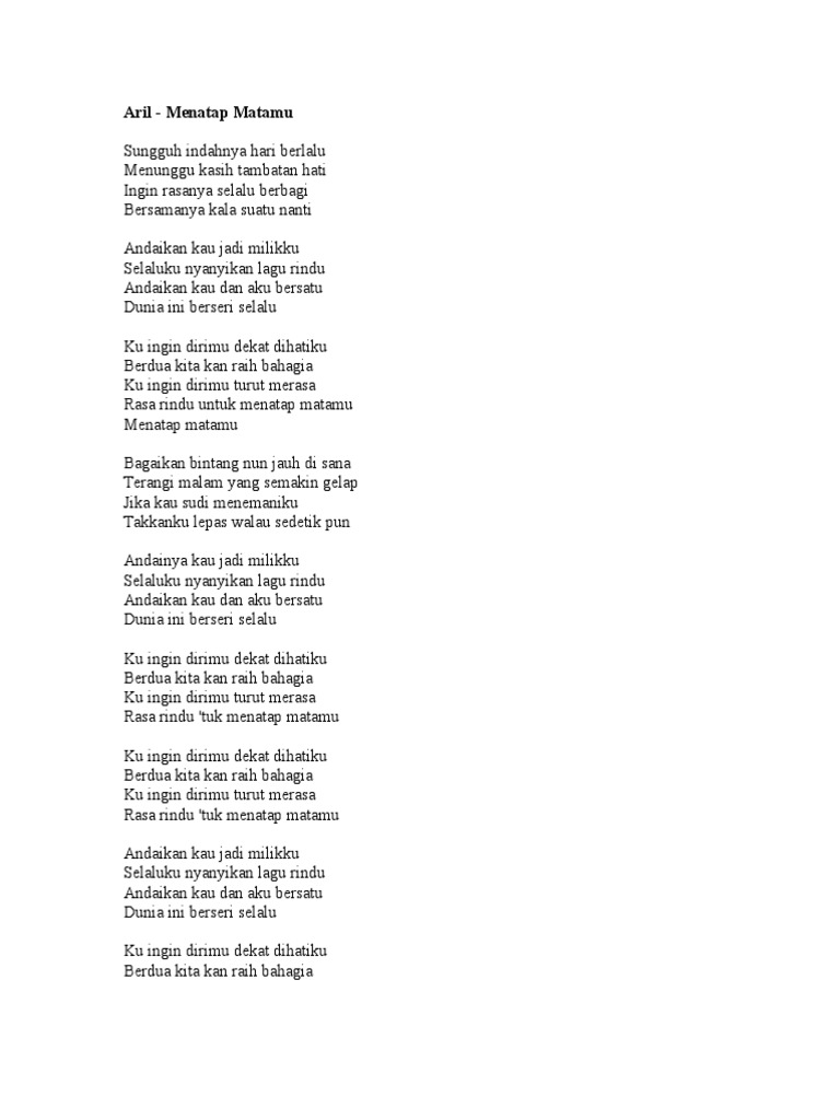 Lirik Lagu Real Spin Semakin Rindu Wattpad