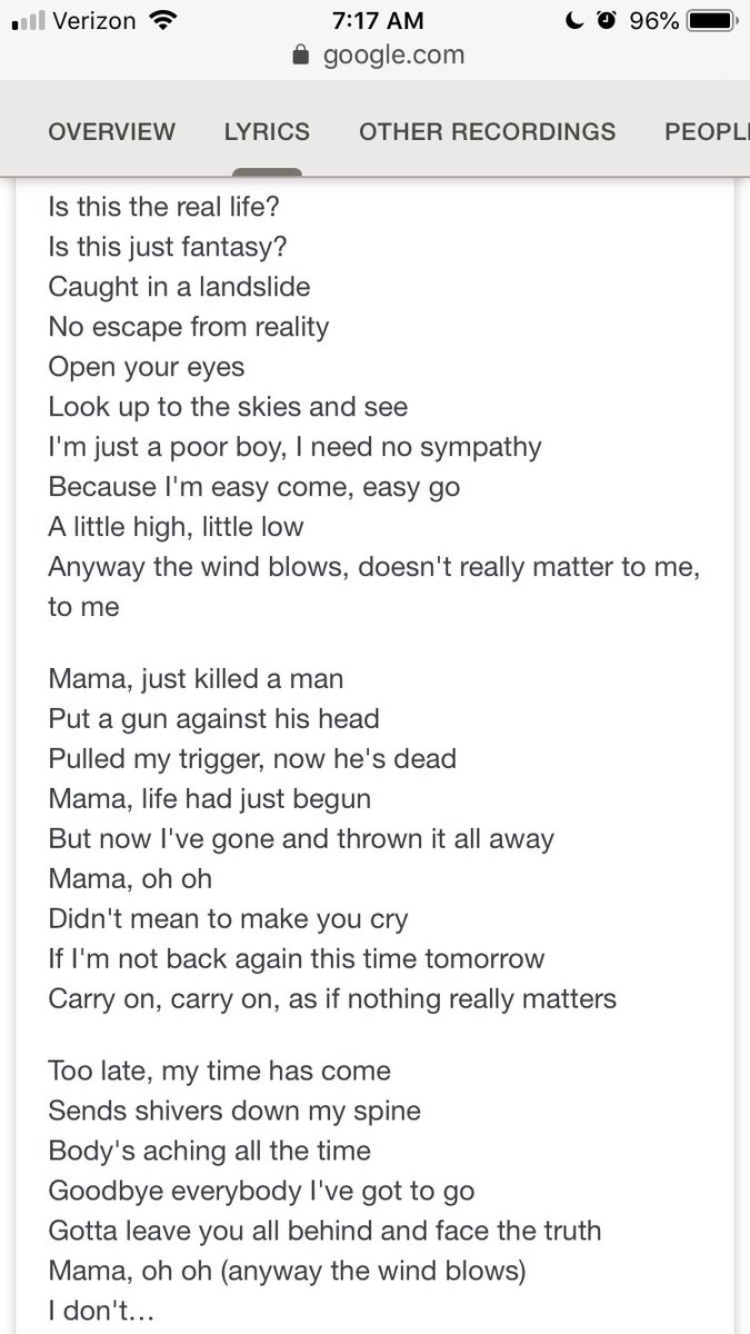 Bohemian Rhapsody Great Song Lyrics Queen Bohemian Rhapsody Lyrics Music Lyrics