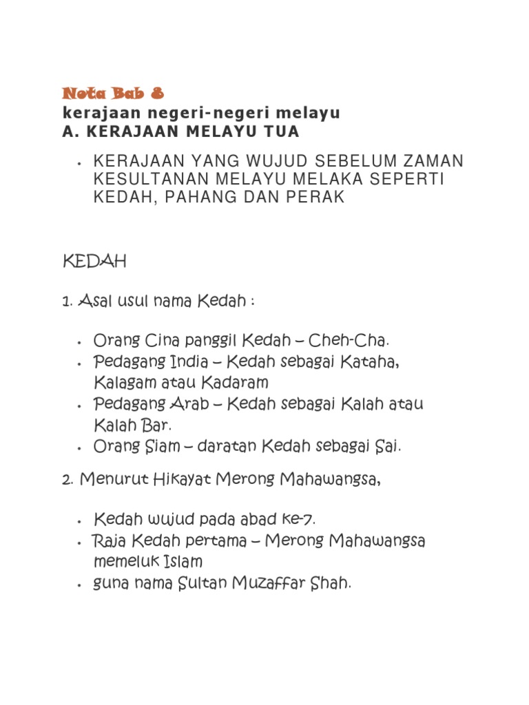 Kerajaan Negeri Negeri Melayu A Kerajaan Melayu Tua Nota Bab 8