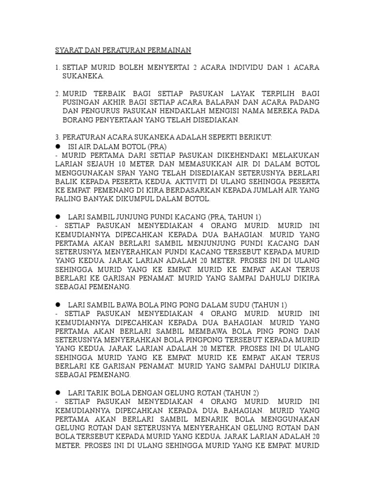 Peraturan Pertandingan Mssd 1 Undang Undang Permainan