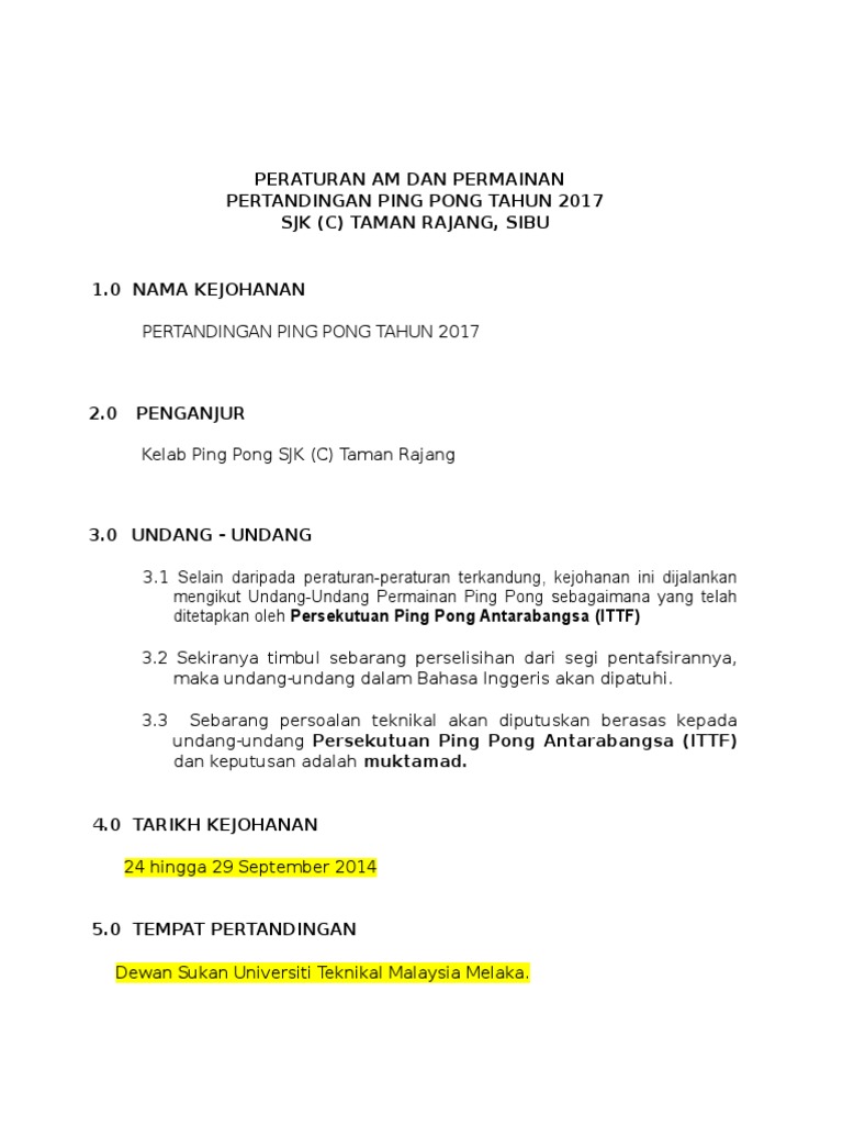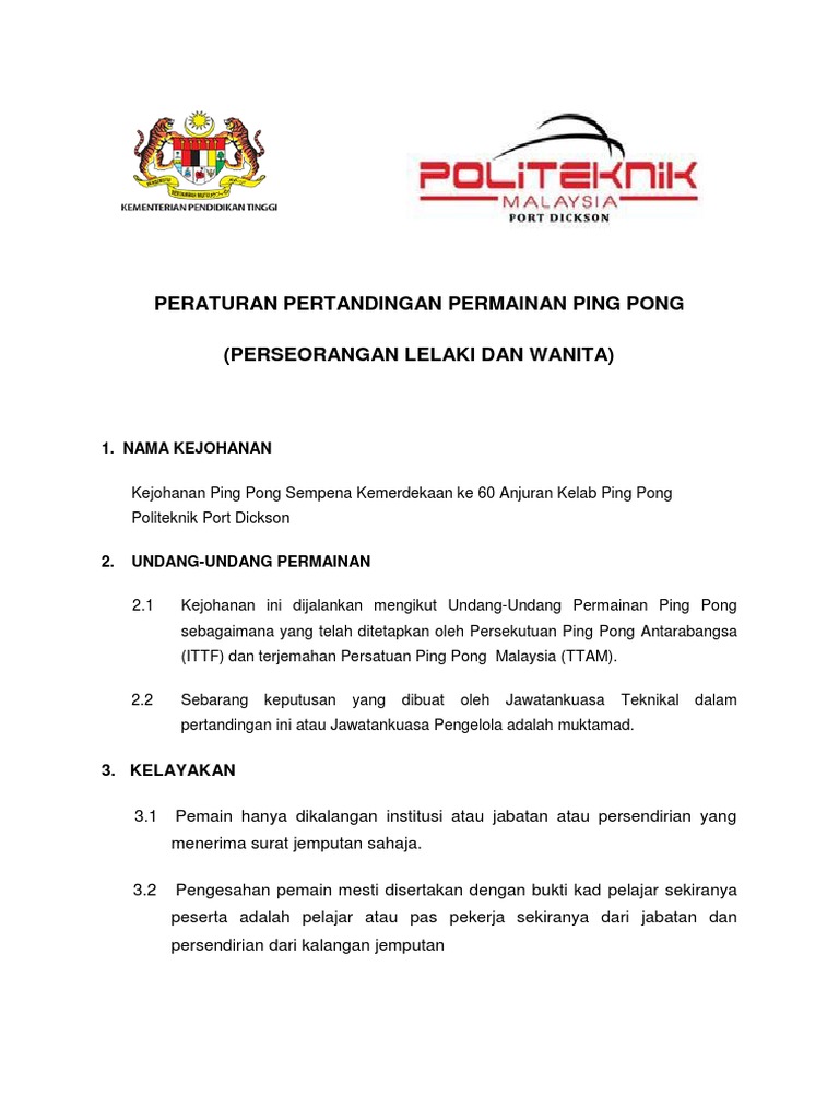 Peraturan Permainan Ping Pong Kemerdekaan Ke 60 2017 Borang Penyertaan