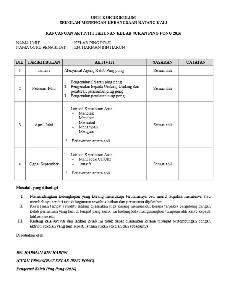 Doc Rancangan Aktiviti Tahunan Kelab Ping Pong Leo Lili Academia Edu
