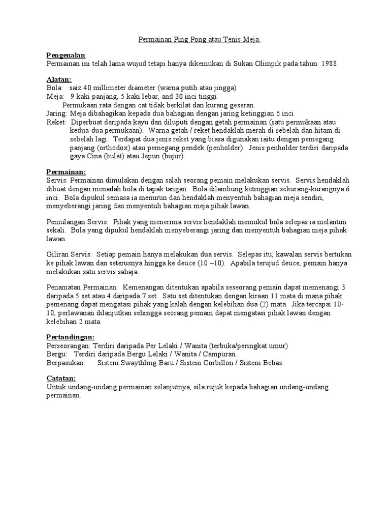 Doc Ping Pong Pengenalan Dan Hubungkait Kepada Perkembangan Sukan Ping Pong Di Malaysia Ryan Yee Academia Edu