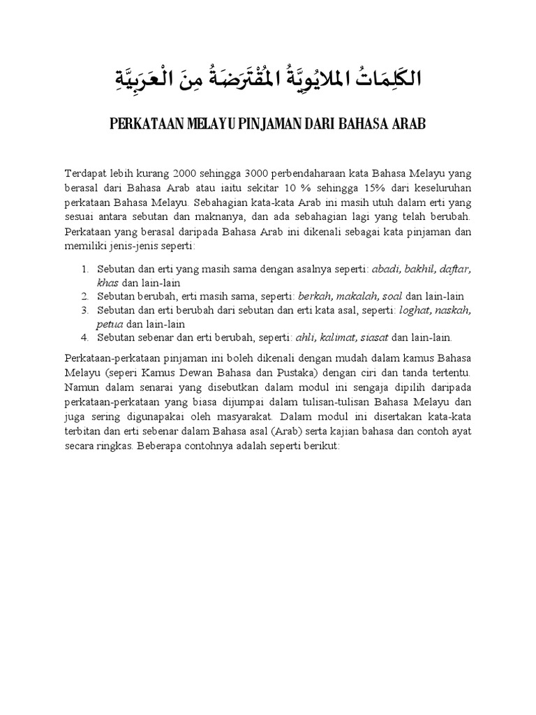 Pdf Kata Pinjaman Arab Dalam Bahasa Melayu Analisis Kajian Dari Sudut Perubahan Morfologi Arabic Loanwords In Malay Language Analytical Study Of Morphological Changes