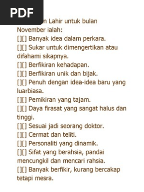 Sifat Bulan Lahir Untuk Bulan November Ialah