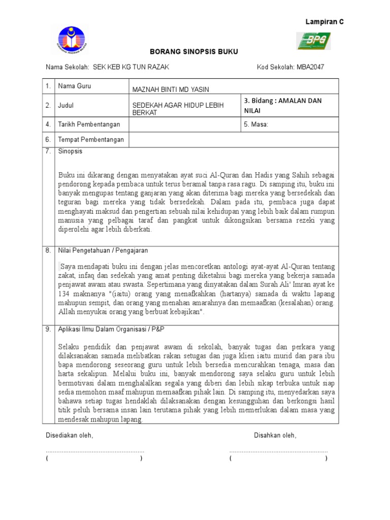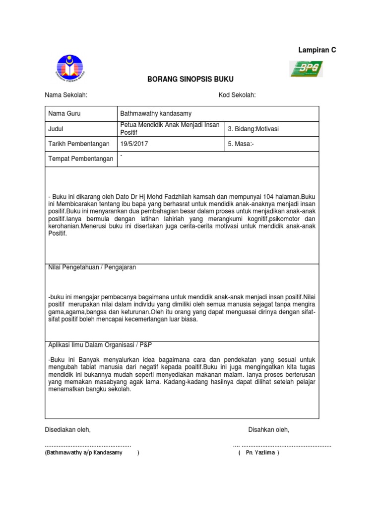 Buku Ladap Docx Lampiran C Borang Sinopsis Buku Nama Sekolah Sk Seberang Perak Kod Sekolah Aba 8244 1 Nama Guru Mohd Saleh Hudin Bin Mohd Ramly 2 Course Hero