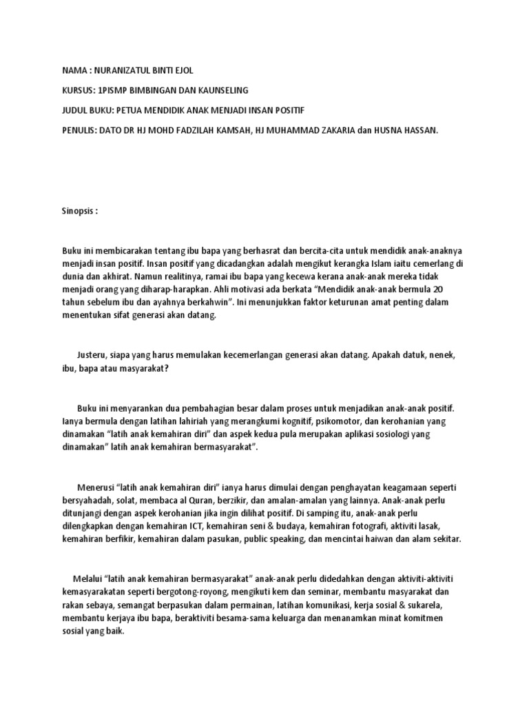 Sinopsis Petua Mendidik Anak Menjadi Insan Positif New Docx